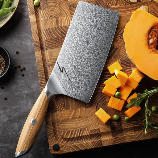 The KOTSU Series Cleaver is crafted for chefs who demand precision, power, and enduring beauty in their tools. Forged from 73 layers of SG2 Damascu...